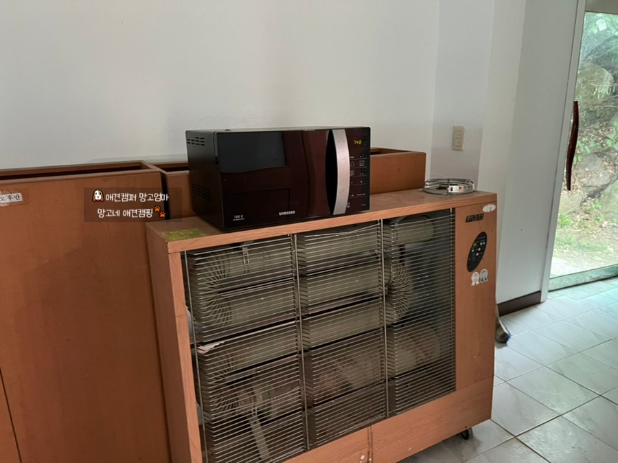 히터 위에 전자레인지도 있어요.