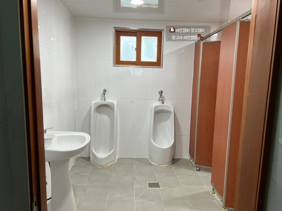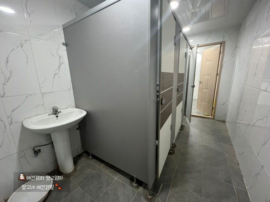 매점 옆으로 화장실과 샤워실, 개수대가 있어요.