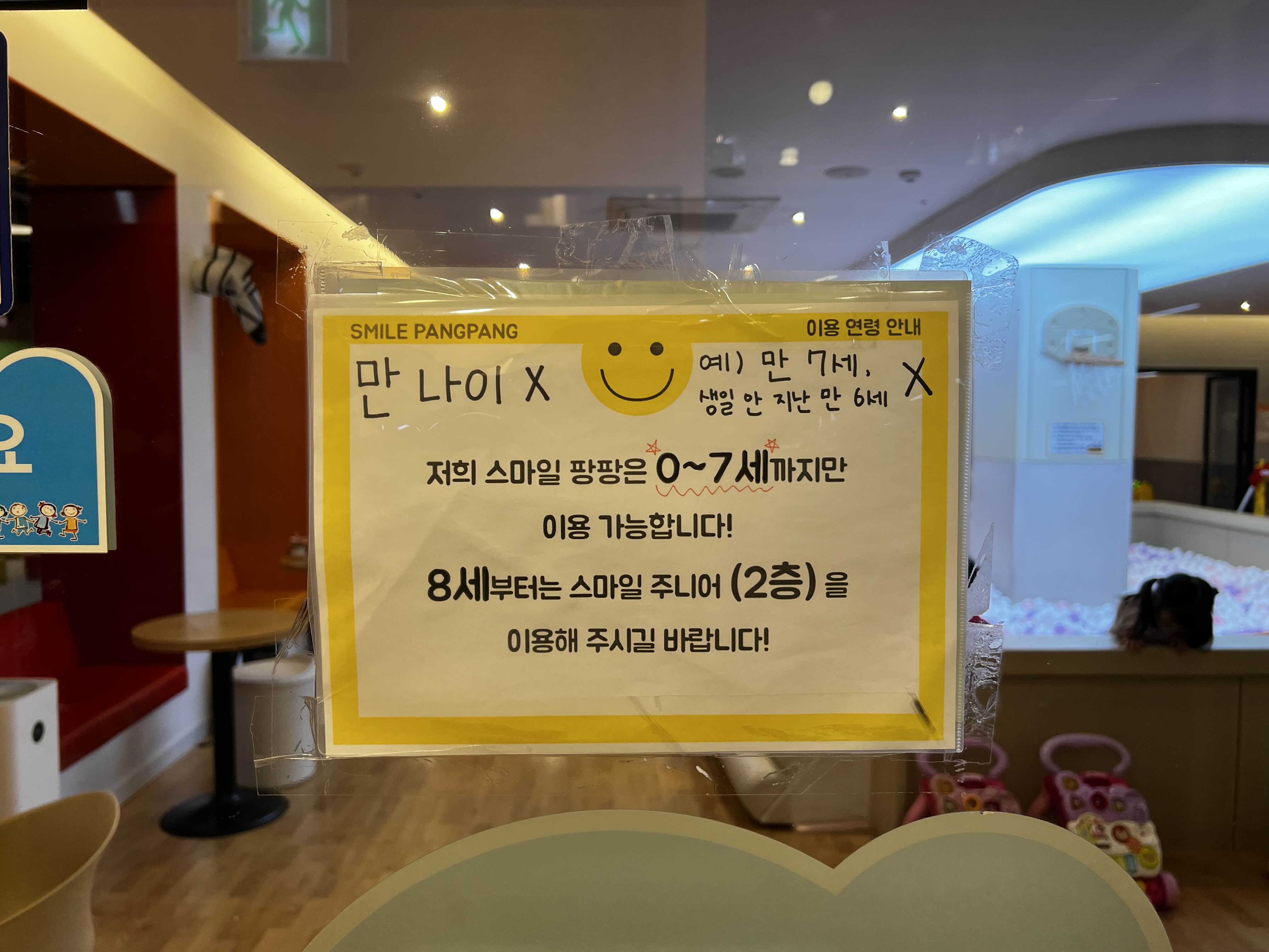 스마일 팡팡은 3층, 7살까지 올 수 있고