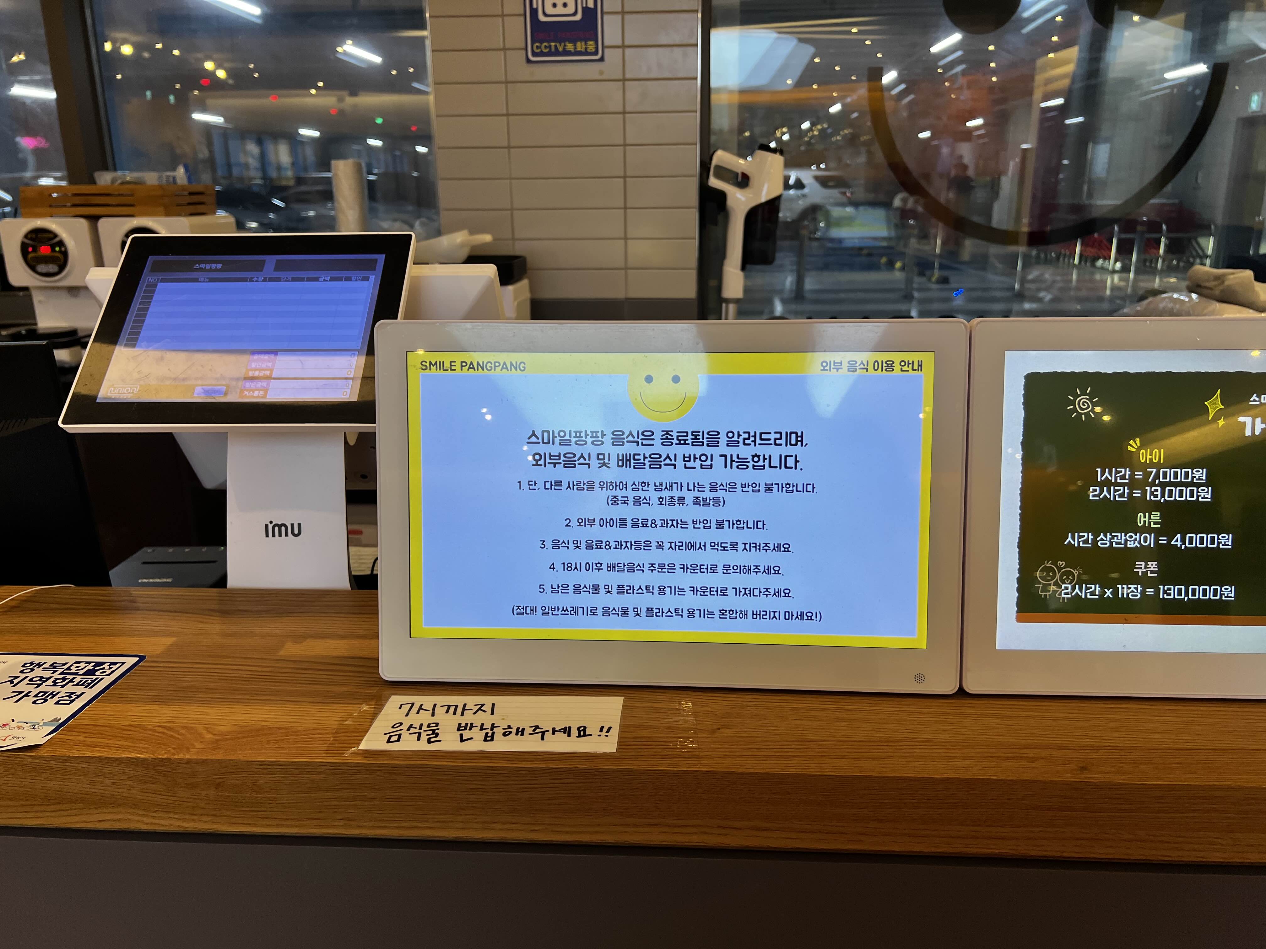 과자와 음료수는 매장에서 판매하니 가지고 오시면 안된다고 해요.